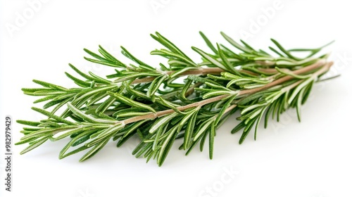 fresh rosemary sprigs aromatic herb closeup delicate leaves woody stems soft lighting culinary ingredient showcase botanical detail on white background