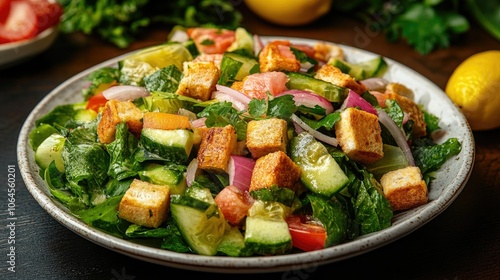 Fresh Salad with Croutons and Colorful Vegetables