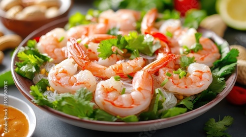 Fresh Shrimp Salad with Herbs and Vegetables Ready to Serve