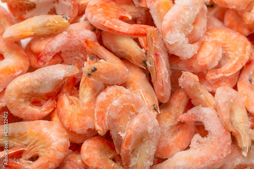 Fresh shrimps in ice. Top view.