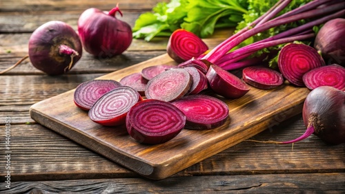 Fresh Sliced Beetroot on Wooden Surface, crunchy texture, kitchen setup