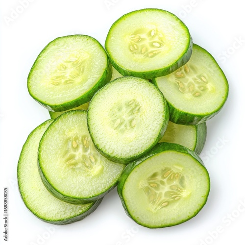 Fresh Sliced Cucumber Rounds Isolated on White Background