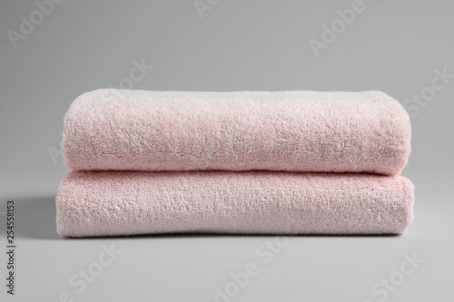 Fresh soft folded towels on light background