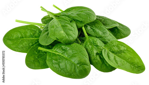 Fresh spinach leaves forming a bunch isolated on transparent background, ideal for healthy eating and vegan concepts