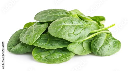 Fresh spinach leaves pile isolated on white background.