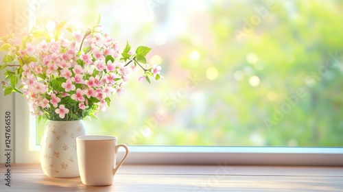 Fresh Spring Flowers in Glass Vase Celebrating International Women's Day with Soft Pastel Tones and Contemporary Elegance