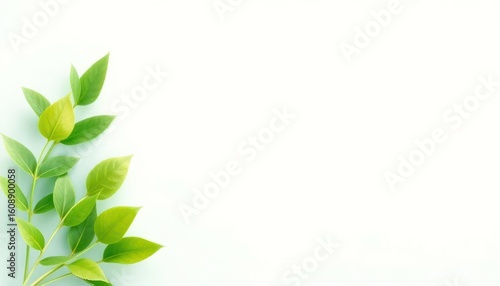 Fresh spring foliage with leaves arranged on a clean white background