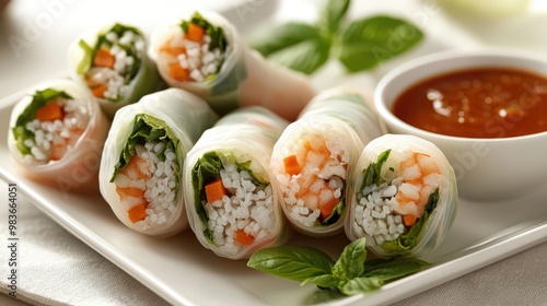 Fresh Spring Rolls with Dipping Sauce and Vegetables
