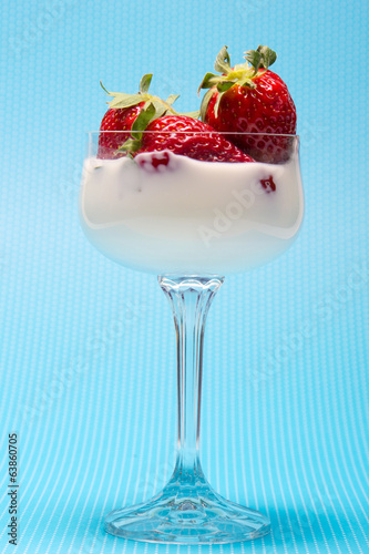 fresh strawberries on a glass with cream