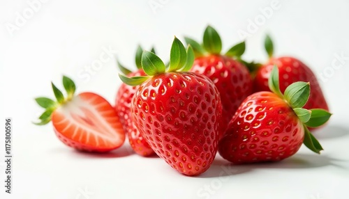 Fresh Strawberries on White Background, Red Ripe Fruit, Closeup View