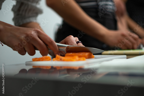 fresh sushi preparation, smoked salmon