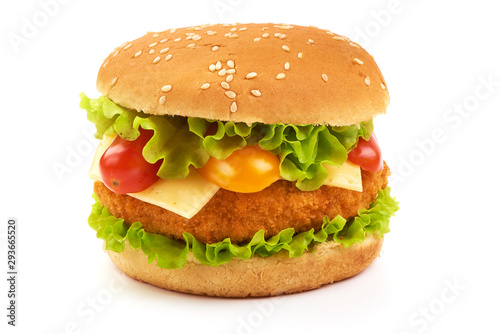 Fresh tasty burger, american hamburger, fastfood, isolated on white background