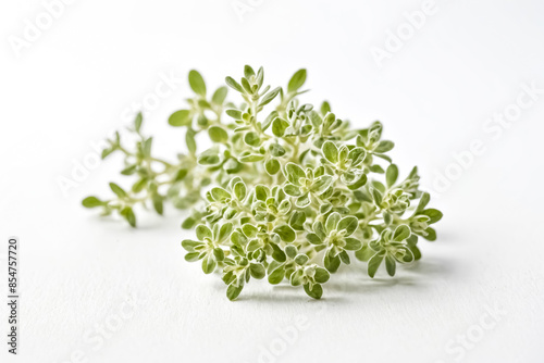 Fresh Thyme Sprig on White Background