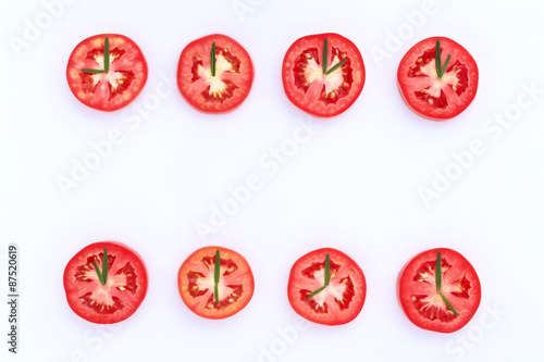 fresh tomato cut half with rosemary leaf as a clock. World clock