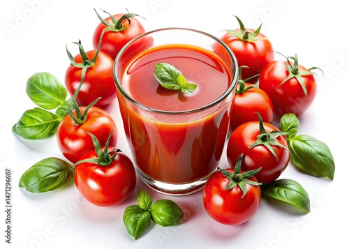 Fresh Tomato Juice Aerial Photography, Healthy Drink, Summer Recipe