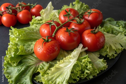 Fresh Tomatoes and Crisp Lettuce Arranged on a Dark Background for Culinary Use