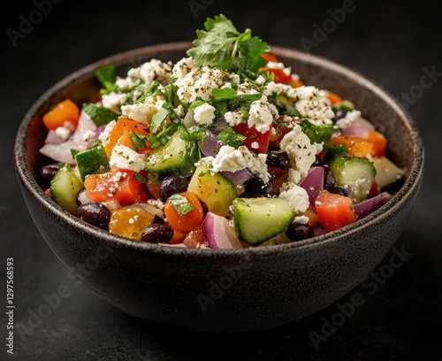 Fresh vegetable salad recipe kitchen food photography dark background close-up healthy eating concept