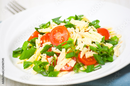 Fresh vegetable salad with cherry tomatoes, green onions, cheese