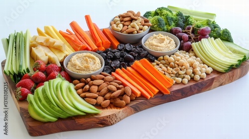 Fresh vegetables and fruits arranged on a table for a healthy vegan lifestyle.