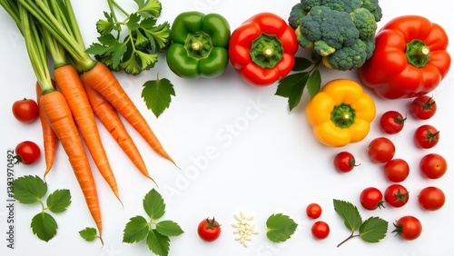 Fresh Vegetables and Herbs Arrangement on White Background for Healthy Cooking