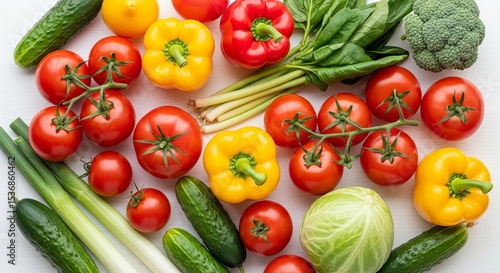 Fresh vegetables arranged neatly on a white surface showcasing vibrant colors and variety for healthy meals