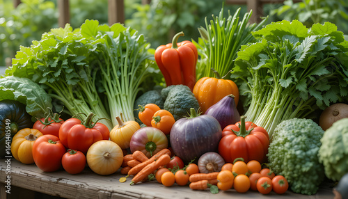 Fresh vegetables arranged on garden table, healthy organic produce for clean eating and sustainable lifestyle