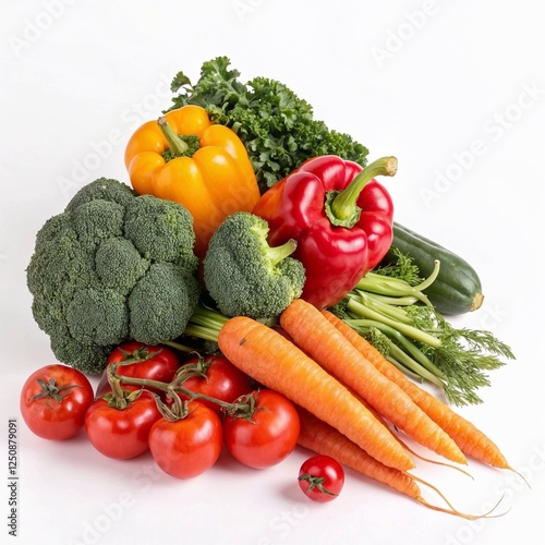 Fresh vegetables assortment on white background for healthy food concept