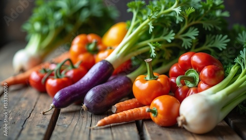 Fresh vegetables in rustic style and vibrant colors represent healthy eating