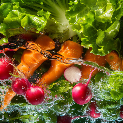 Fresh Vegetables in Water, Vibrant Mood, Healthy Scene, Against a Bright Background