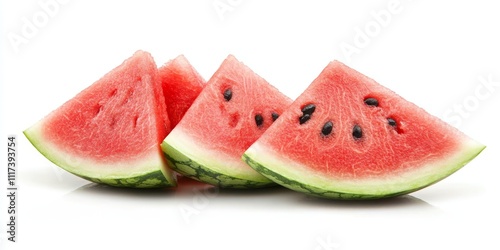 Fresh watermelon as a vibrant fruit makes for a delightful appetizer. This delicious watermelon serves as a perfect snack and refreshing food choice on a clean white background.