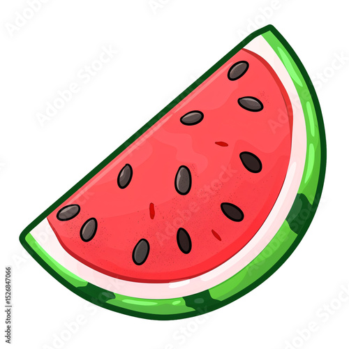 Fresh watermelon slice in hand drawn style on transparent background. Design element. Plants. Summer. Half round watermelon slice. Sticker