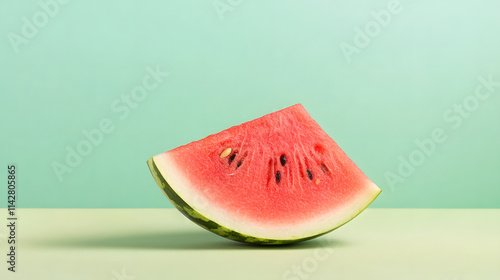 Fresh watermelon slice with vibrant pink flesh and green rind