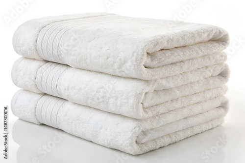 Fresh White Bath Towels Folded Hotel Style on White Background, 8K Stock Photo