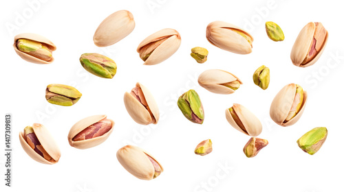 Fresh Whole and Cracked Pistachios Flying in the Air Set