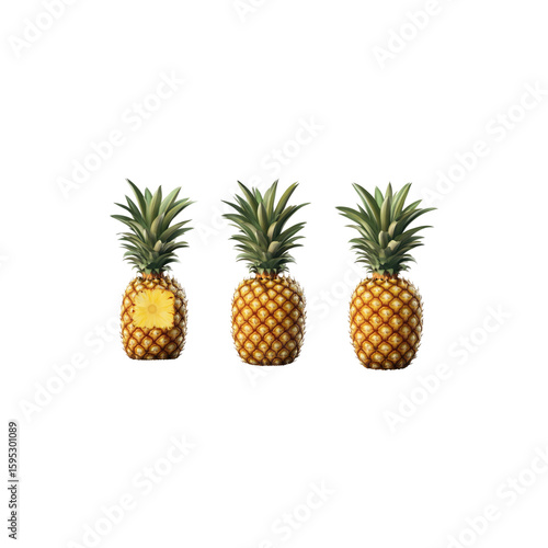 Fresh Whole Pineapple with Spiky Green Leaves Isolated on White Background