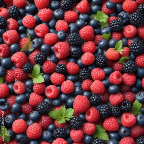 Fresh wild berries mix with raspberry, blueberries, and blackberries on white background, organic, food