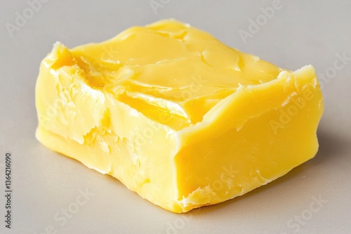 Fresh Yellow Butter Block on Light Gray Surface for Culinary Use
