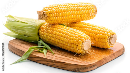 Fresh yellow corn on wooden cutting board, showcasing its vibrant color and natural beauty