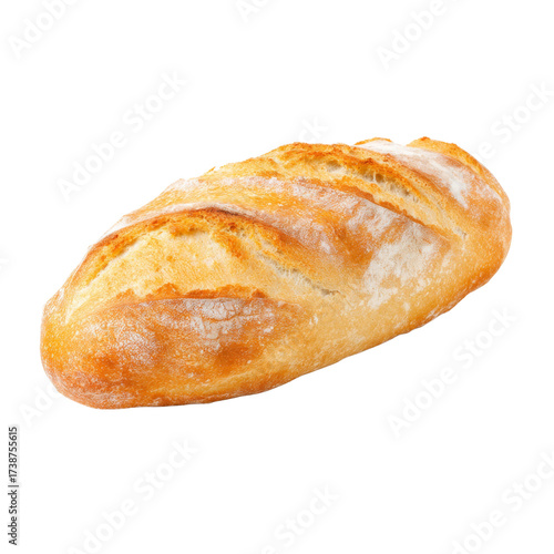 Freshly Baked Artisan Bread Loaf with Golden Crust and Soft Interior on White Background