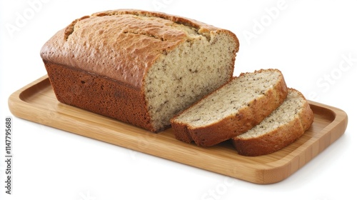 Freshly Baked Banana Bread on Wooden Serving Board with Slices