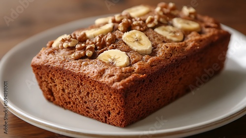 Freshly Baked Banana Nut Bread Topped with Sliced Bananas and Walnuts