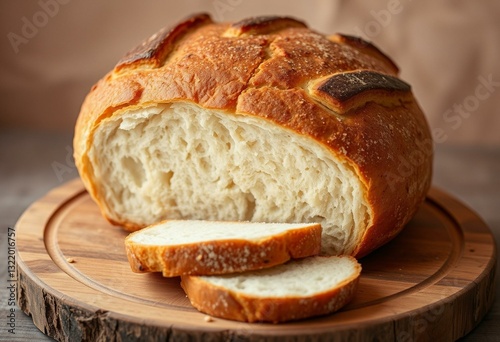 Freshly baked bread on a rustic cutting board