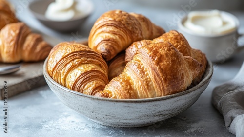 Freshly Baked Croissants in Elegant Bowl on Rustic Table Setting