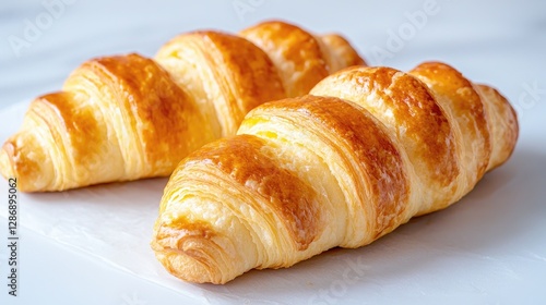 Freshly baked croissants on parchment paper
