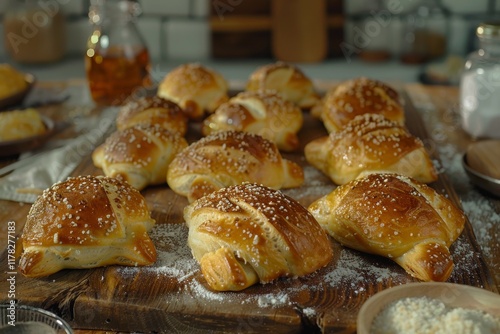 Freshly baked golden croissants
