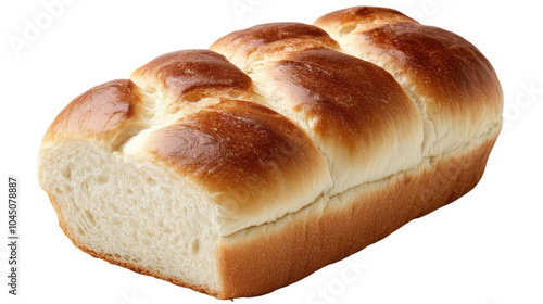 Freshly baked loaf of soft bread with a golden brown crust displayed on a plain surface