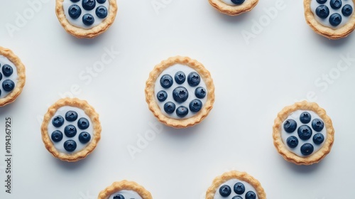 Freshly Baked Mini Tarts with Cream Filling and Blueberries Arranged on a Light Background for a Delicious Dessert Concept