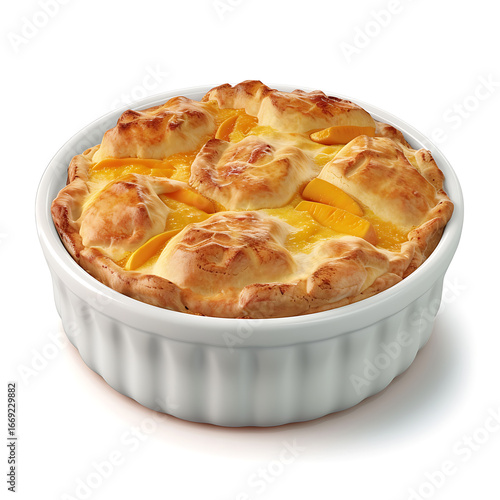 Freshly Baked Peach Cobbler in a Ceramic Dish