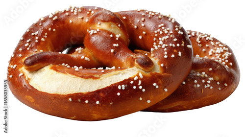 Freshly Baked Soft Pretzels with Sea Salt Topping on White Background