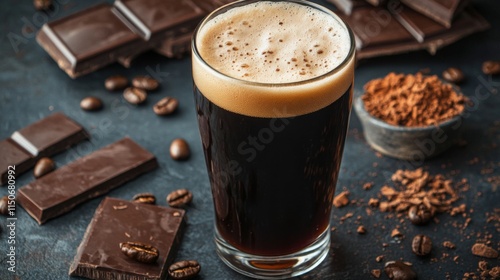 Freshly Brewed Coffee with Chocolate Delights on Dark Background